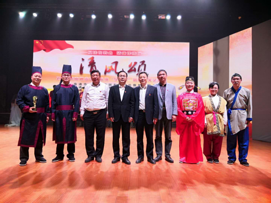 南通产业技术研究院有限公司选送的小品《审舅舅》以古代县官面对情与法的冲突如何进行抉择为背景展开故事,以轻松诙谐的表演讲述法不容情的道理,寓意深刻,让现场观众在欢声笑语中领会为官一任必须忠诚、干净、担当,获得阵阵喝彩。 ![]()