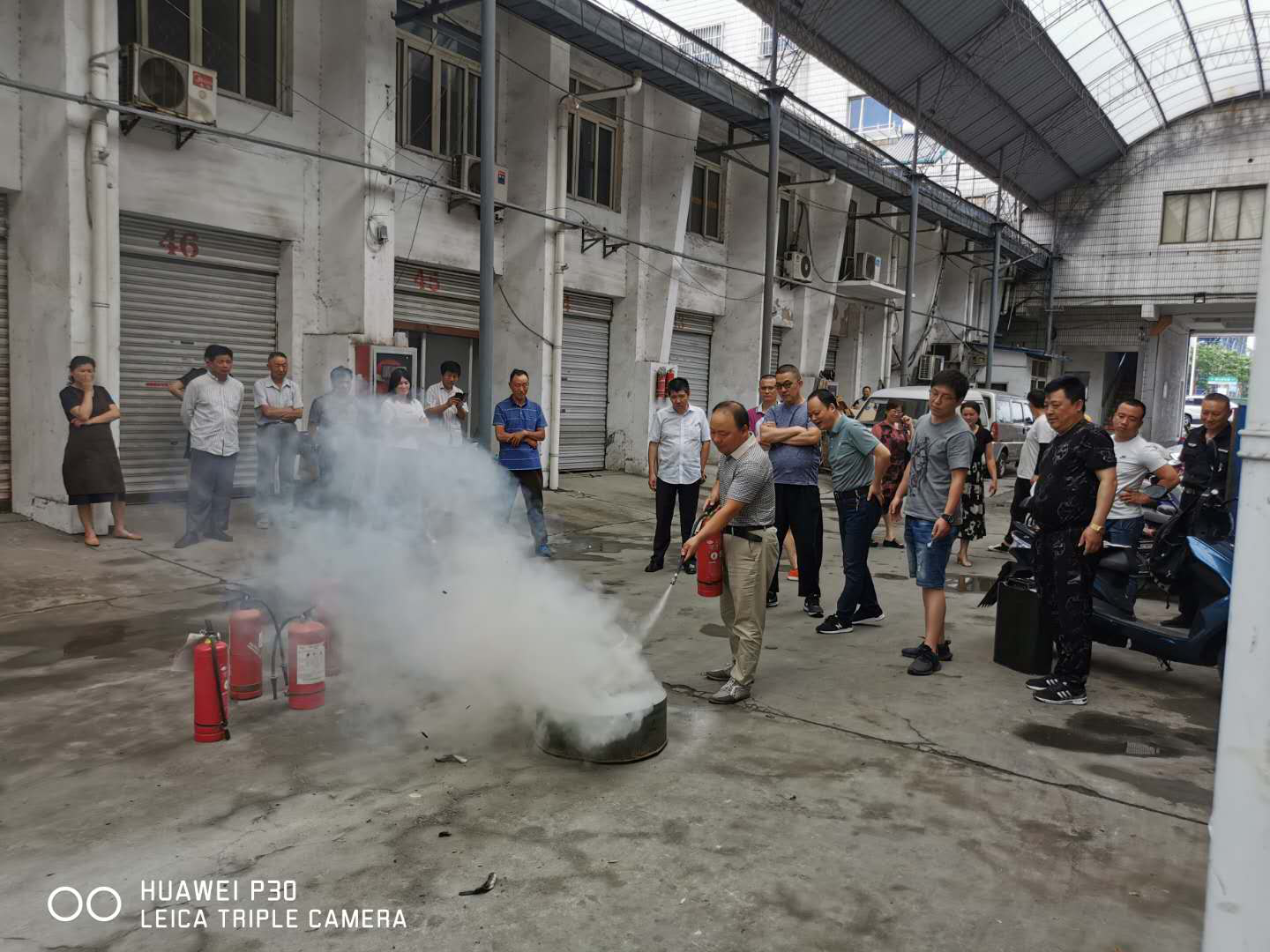 为落实“安全生产月”活动工作部署和要求,增强房屋租赁户的消防安全意识,提高自救防范能力,做到“四懂四会” ,6月29日下午,南通市地方粮食储备库组织大码头房屋租赁户进行了一次灭火器使用方法的演示和实操培训。